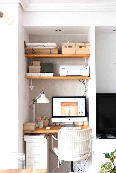 You can utilize small spaces under the staircase by placing desks and shelves and creating a well-managed working place yourself.